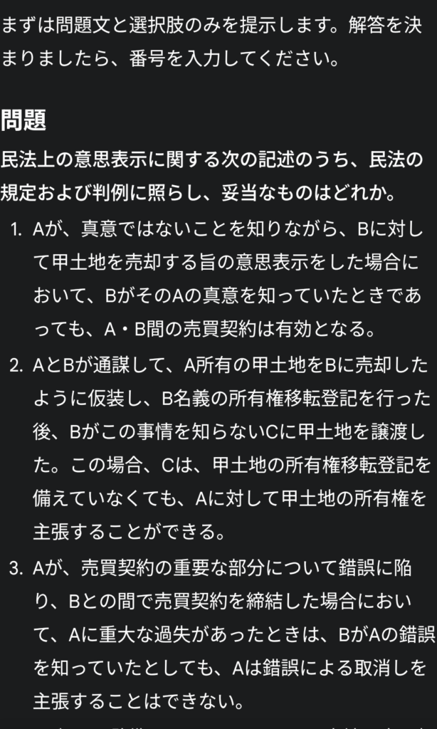 Geminiは、ただの問題集ではありません。私の苦手分野や、その時期にやるべき科目を指定して出題してくれます。